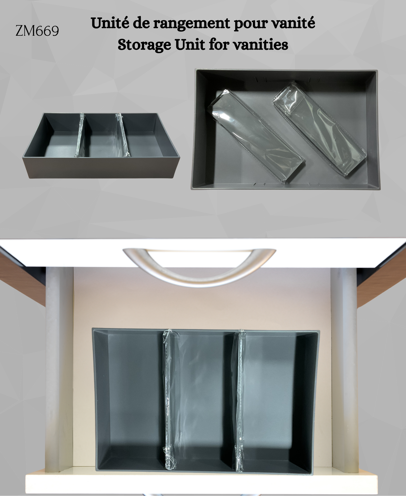 Gardez vos tiroirs Vanité bien rangés et organisés grâce à nos organisateurs de rangement compacts. Conçus pour s'adapter parfaitement à l'intérieur des tiroirs, ils permettent de séparer et de ranger les articles de toilette et les accessoires pour en faciliter l'accès. Fonctionnel, peu encombrant et élégant, chaque organisateur maximise l'espace des tiroirs tout en gardant vos articles essentiels parfaitement en ordre.